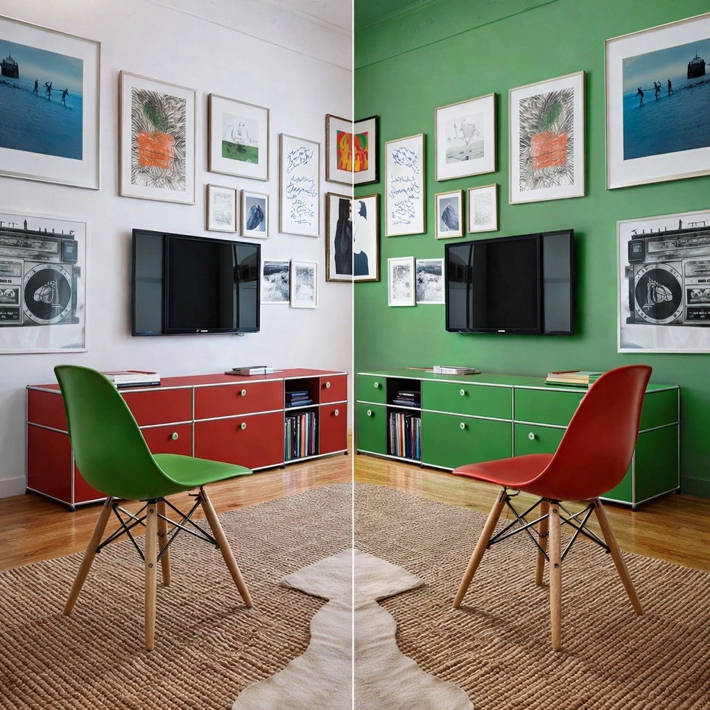 Rot dominant, Grün natürlich? Zu einfach. Der Beitrag zeigt, warum solche Klischees täuschen – und wie Rot und Grün im Zusammenspiel von Licht, Raum und Material tatsächlich wirken.