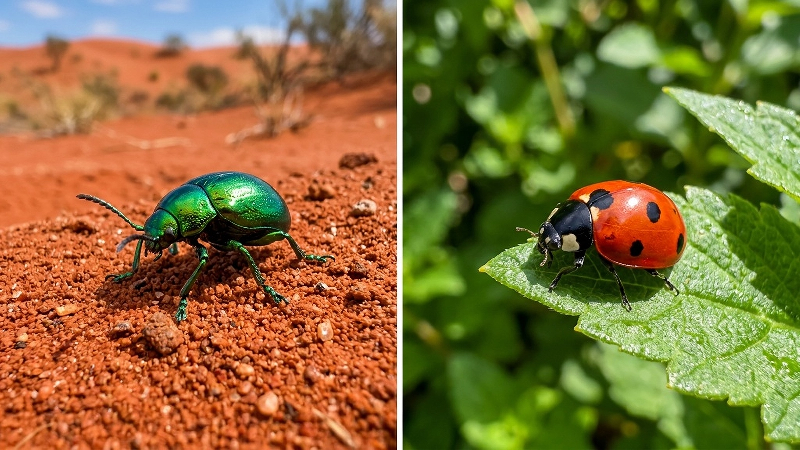 Der Unterschied liegt nicht im Farbton selbst, sondern in Menge und Nachbarschaft. Ein leuchtend grüner Käfer im roten Wüstensand wirkt nicht weniger signalhaft als ein Marienkäfer im grünen Laub.
