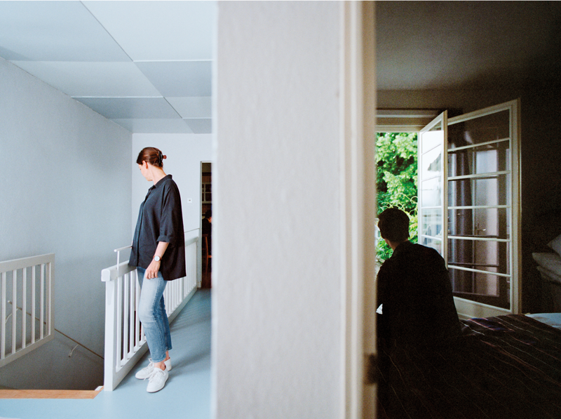 Im Kapitel „Begegnung im Haus" ©Ludovic Balland sind die Fotos farbig. Links entfaltet die Farbe Himmelgrau ihre optisch aufhellende, raumauflösende Wirkung.