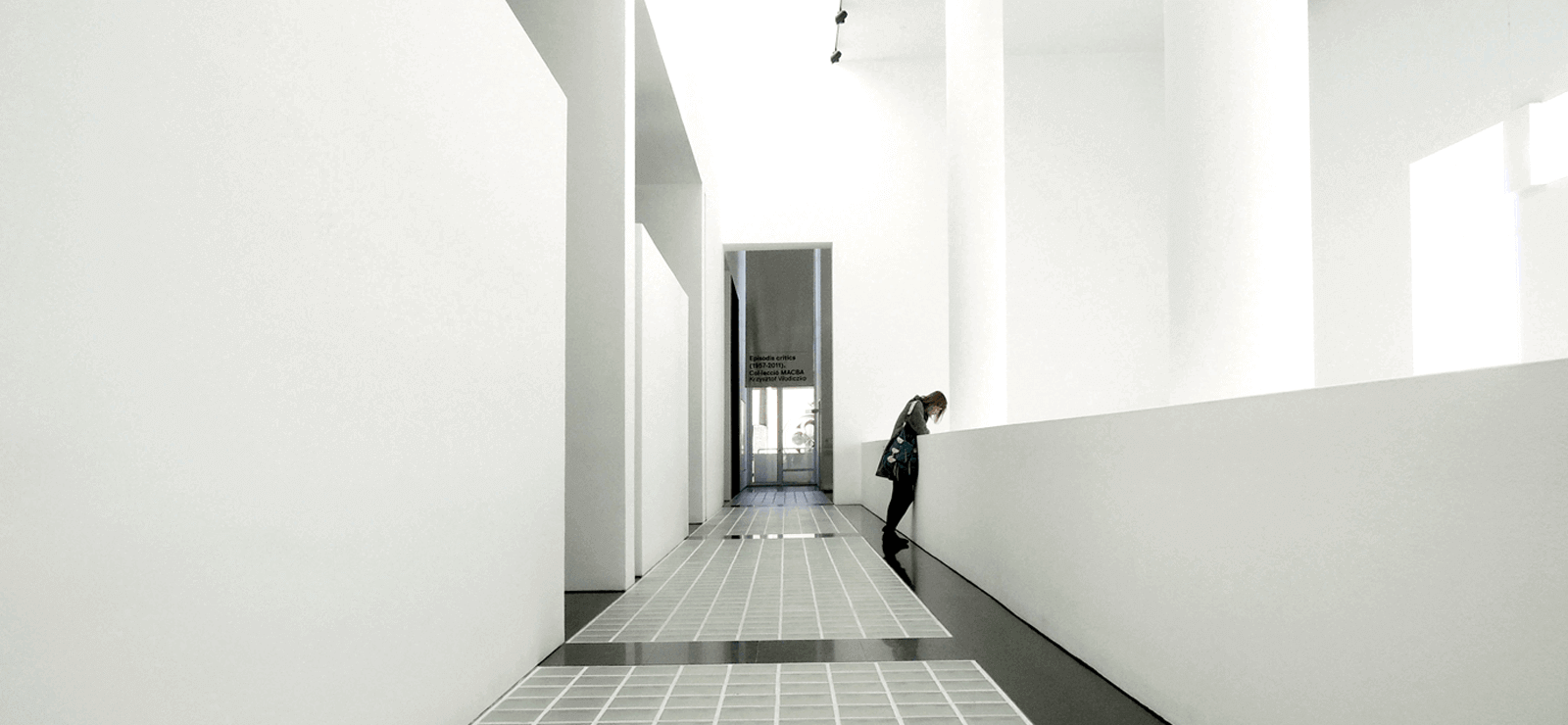 Anstrengende Kontrastarmut: Im Richard-Meier-Kunstmuseum in Barcelona blickt man fast überall in das Gegenlicht. Die Flächen, die alle gleich hell und künstlich sind, halten einen gefangen in einer überdimensionierten, blendenden Umgebung ohne Kontraste und Ausgleich. Die Rauminhalte wirken klein und grau. Foto ©Shutterstock.